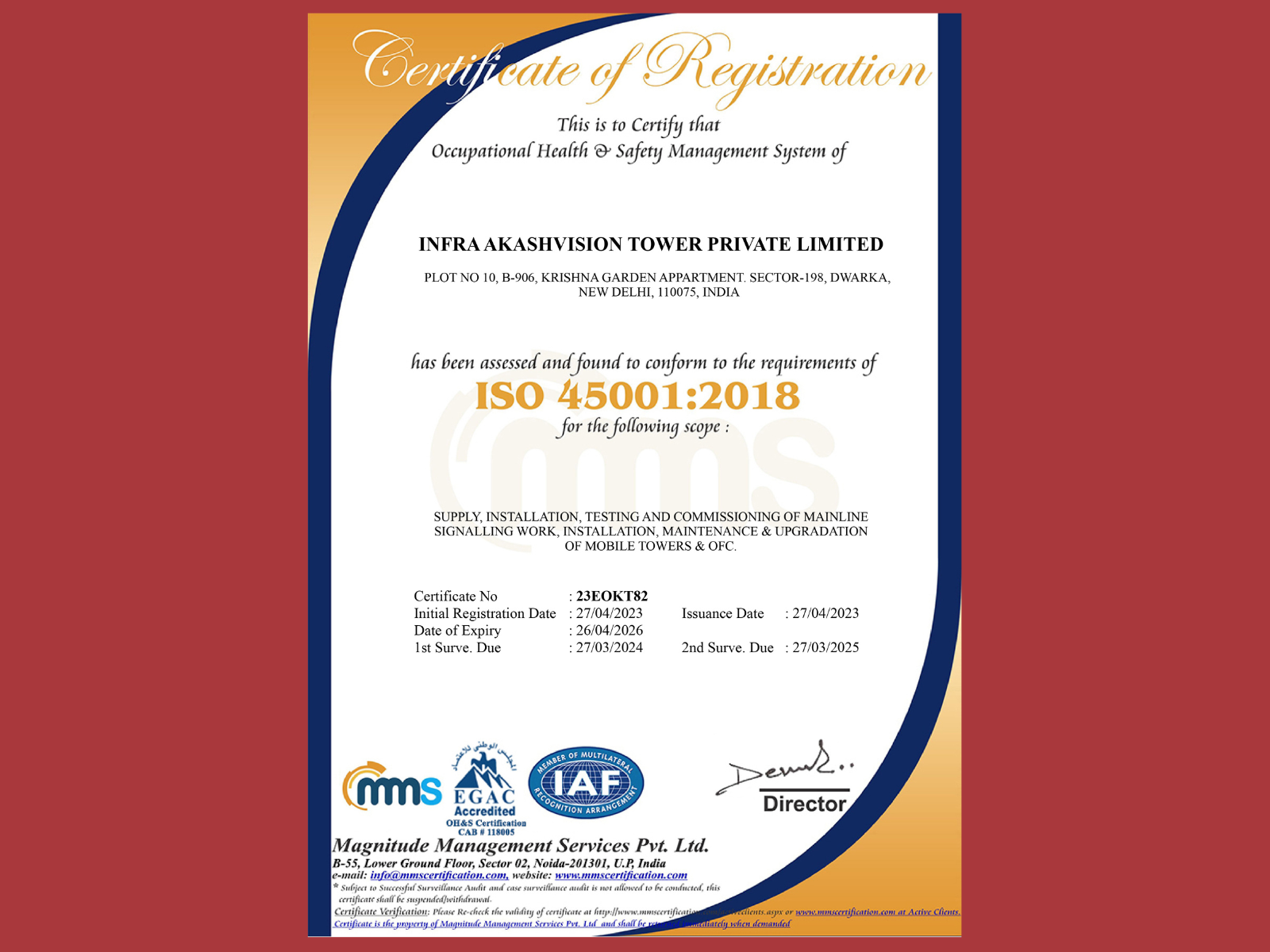 This certification demonstrates our dedication to maintaining a safe and healthy work environment. By implementing robust safety protocols and risk management processes, we strive to minimize workplace hazards and protect our employees and stakeholders.