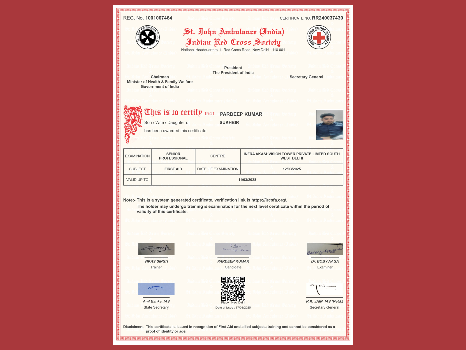 Red Cross Society First Aid Certification